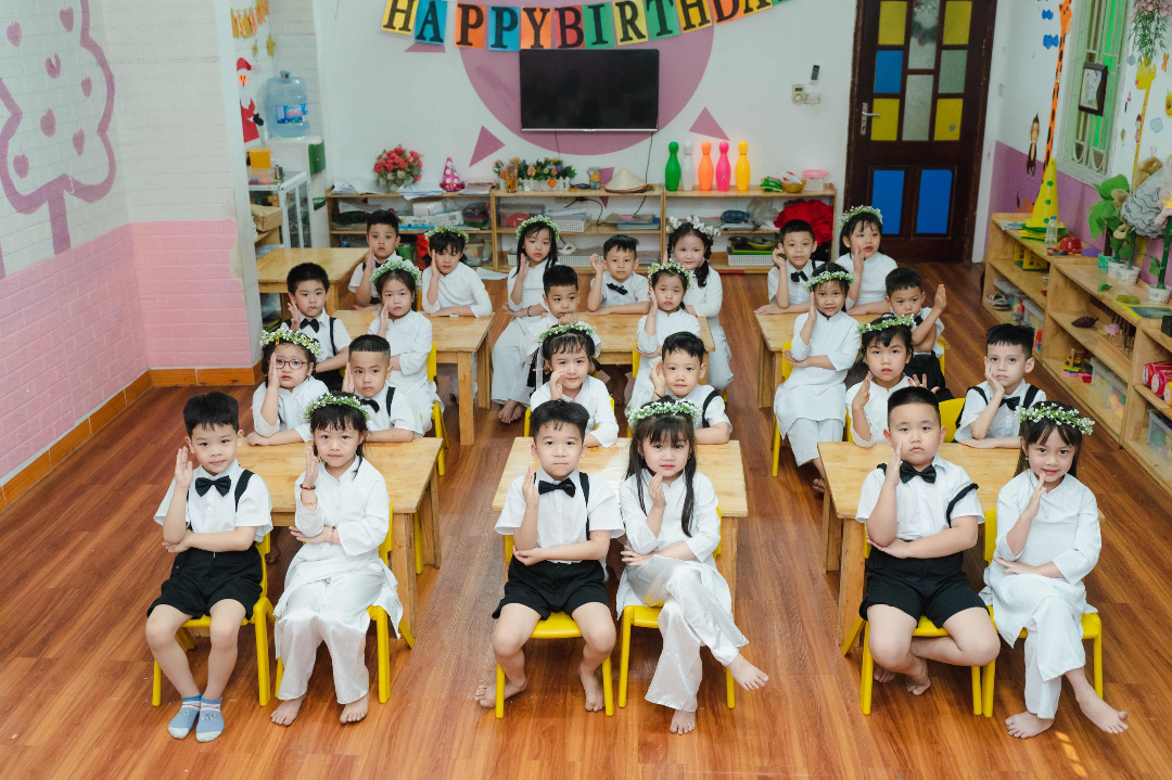 - Các con được học song ngữ ngày 2 tiết cùng giáo viên nước ngoài và giáo viên Việt Nam.